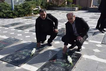 به گزارش روابط عمومی اداره کل دامپزشکی استان؛ در این مراسم همکاران مجموعه دامپزشکی استان با نثار گل و قرائت فاتحه به مقام شامخ شهدا ادای احترام کردند و با گرامیداشت یاد و خاطره آنها،  با آرمانهای امام راحل ( ره ) و شهدا تجدید پیمان کردند.